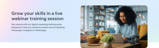 Learn the latest advertising tools and techniques across Meta technologies in a live training webinar led by an experienced trainer.