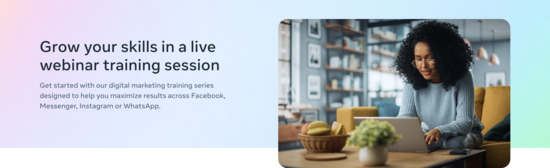 Learn the latest advertising tools and techniques across Meta technologies in a live training webinar led by an experienced trainer.