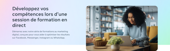 Découvrez les derniers outils et techniques publicitaires sur les technologies Meta dans un webinaire de formation en direct dispensé par un formateur ou une formatrice expérimenté·e.