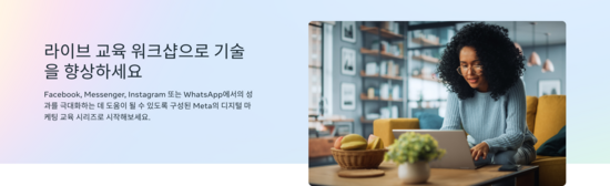 숙련된 강사가 진행하는 라이브 교육 웨비나에서 Meta 테크놀로지 전반의 최신 광고 도구와 기법에 관해 알아보세요.