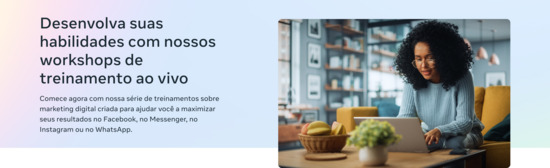 Conheça as ferramentas e técnicas de publicidade mais recentes nas tecnologias da Meta em um webinar de treinamento ao vivo liderado por um treinador experiente.