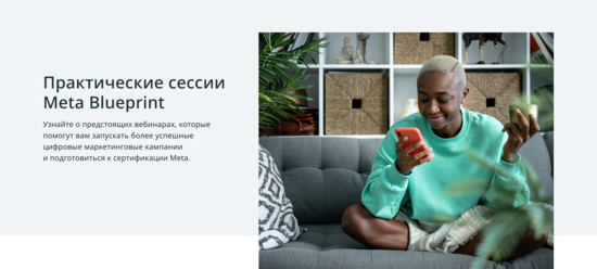 Вебинары Meta Blueprint — это серия онлайн-тренингов под руководством экспертов Meta . Они помогут вам развить навыки в сфере маркетинга, чтобы успешно управлять цифровыми кампаниями и подготовиться к сертификации Meta.