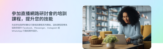 參加由資深講師授課的網路研討會培訓直播,瞭解 Meta 技術最新的廣告工具和技巧。
