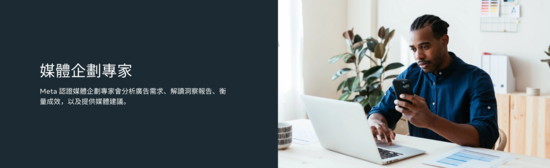 媒體規劃 學習路徑 提供廣告主所需指引,協助他們與客戶溝通,以及在 Meta 各平台規劃行銷活動。這些課程從高階觀點說明 Meta 如何與媒體組合搭配運作,以及依據客戶行銷目標規劃行銷活動的執行方向
